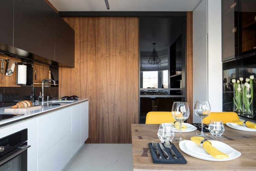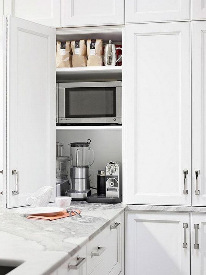 - tốt nhất là nếu các thiết bị gia dụng được giấu sau những cánh cửa giống hệt nhau. Vì vậy, sẽ luôn có trật tự trong nhà bếp và sẽ không có cảm giác hỗn loạn. Đối với lò vi sóng cũng vậy;