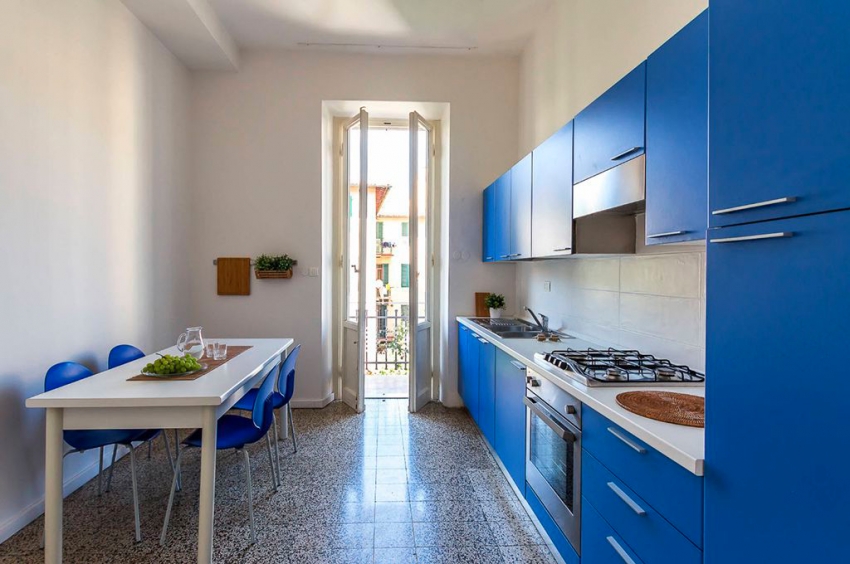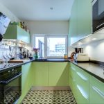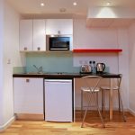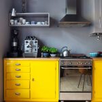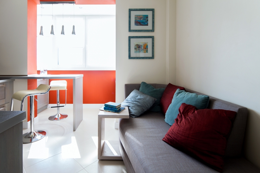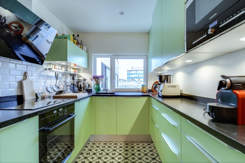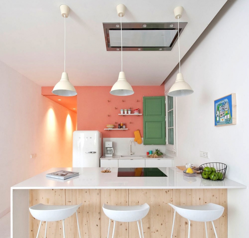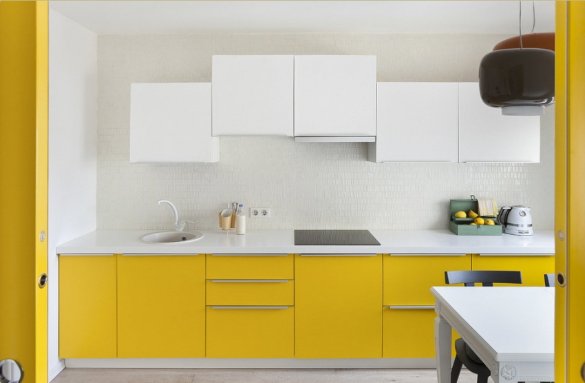 Đăng ký nhà bếp màu sắc tươi sáng phù hợp với các căn hộ studio, từ đó cho phép không quá tải nội thất và tạo điểm nhấn cho khu vực bếp