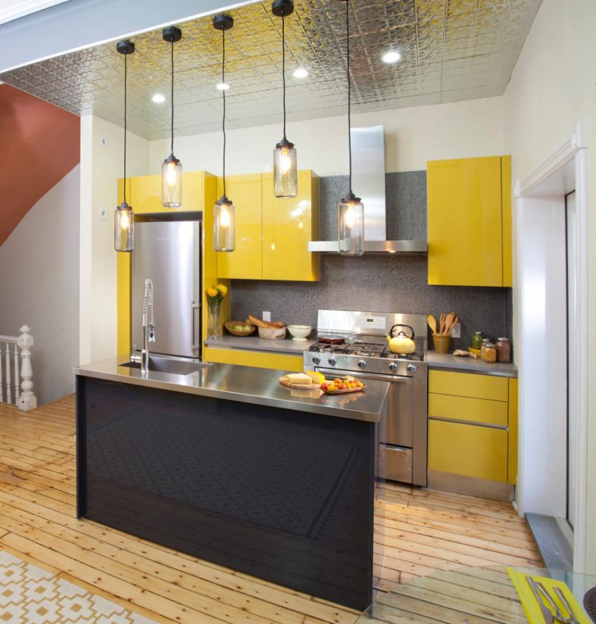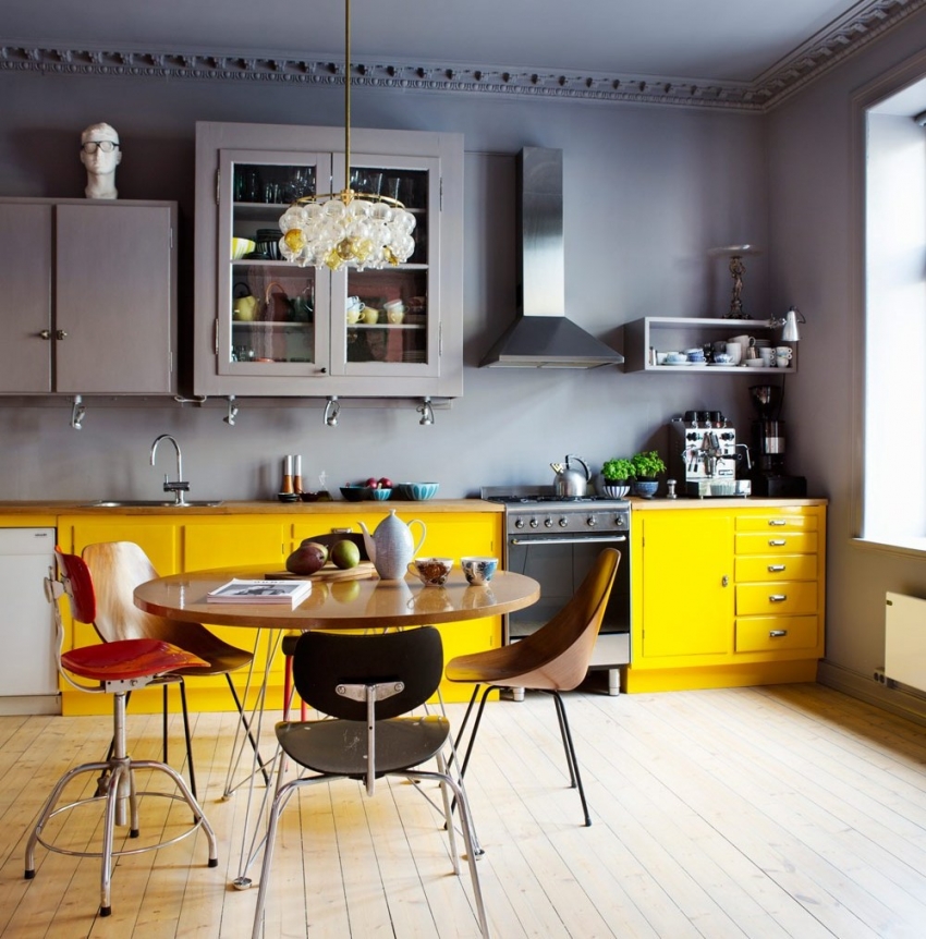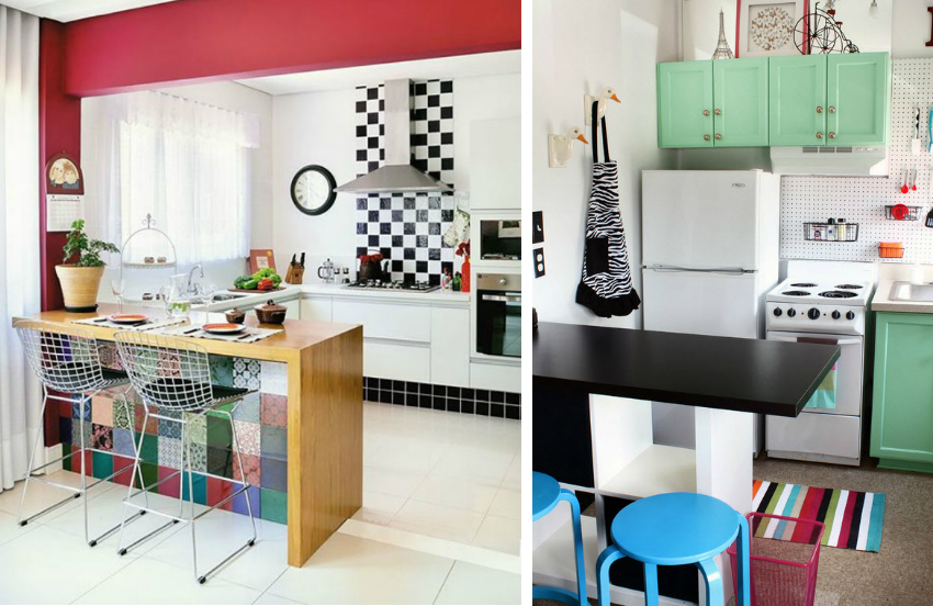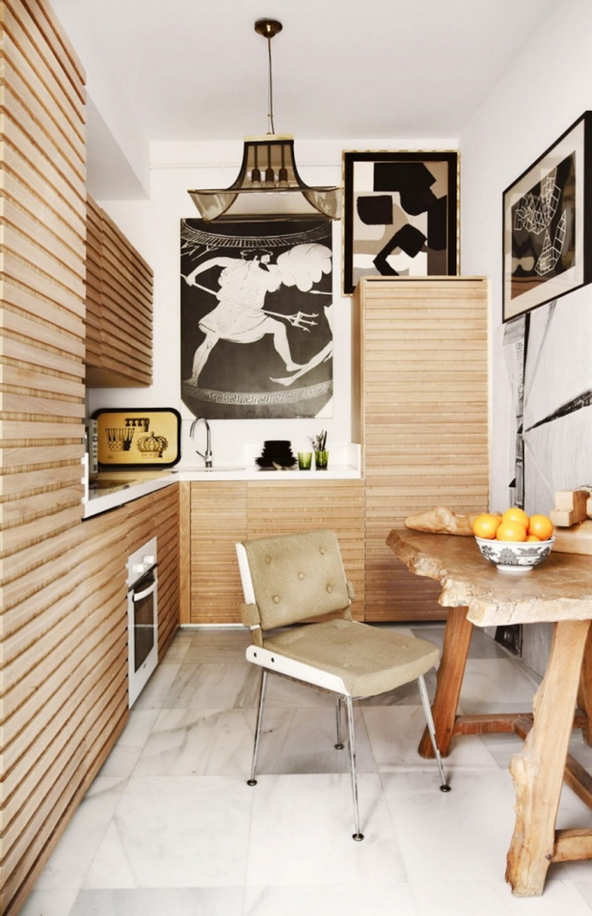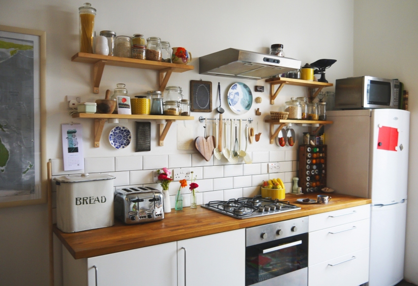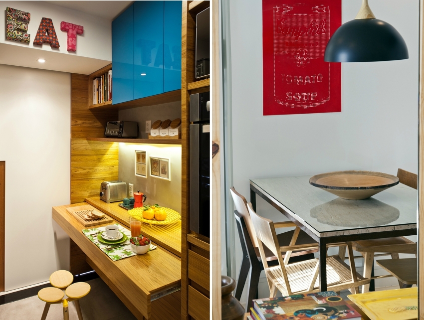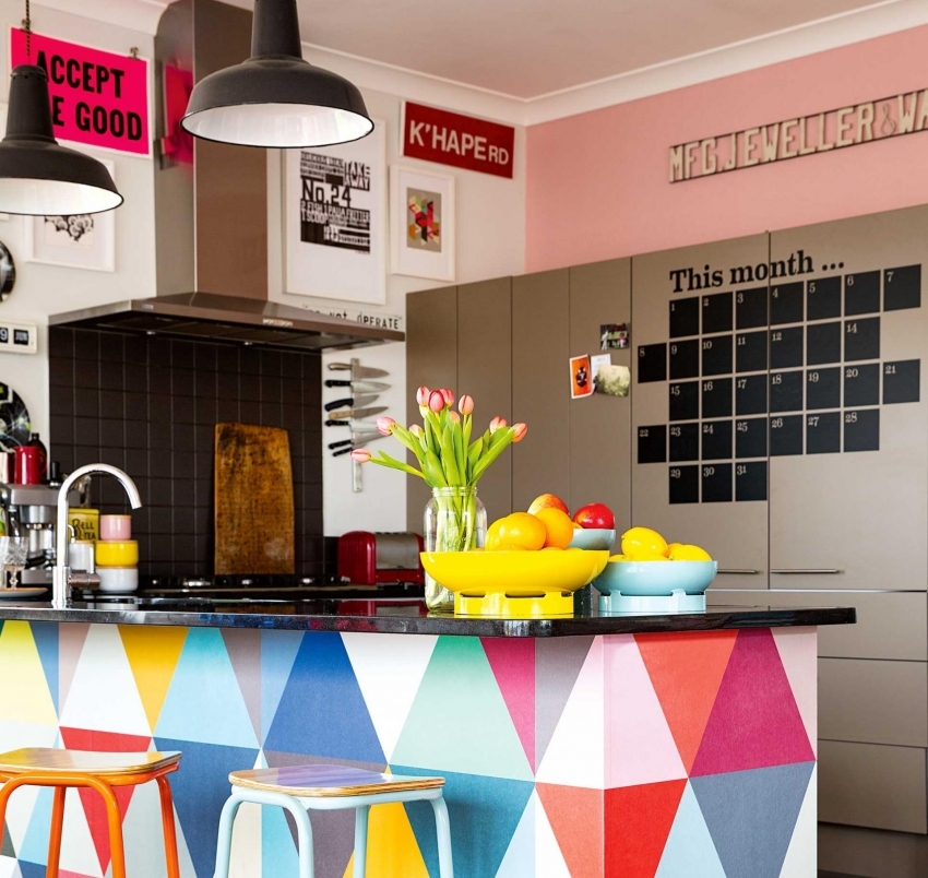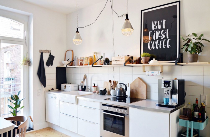 Để trang trí một căn bếp nhỏ tân nghệ thuật bạn có thể sử dụng phụ kiện thú vị và đồ nội thất có hình dạng khác thường