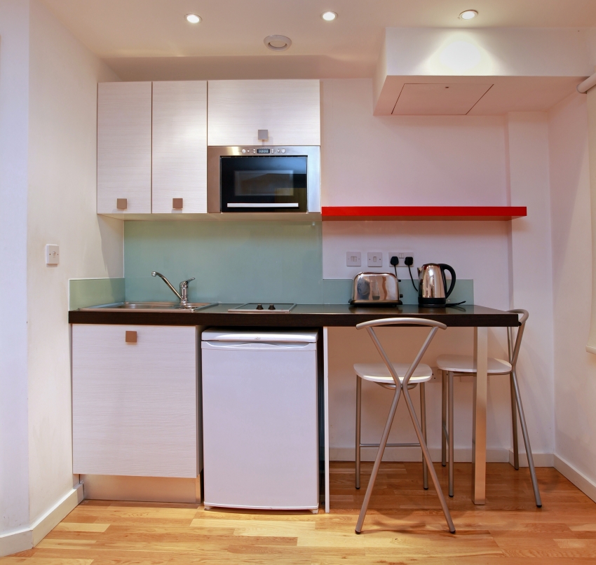 Với một không gian bếp nhỏ, tốt hơn hết bạn nên di chuyển tủ lạnh và thiết bị sưởi sang các phòng khác, ví dụ như sang phòng tắm hoặc hành lang.
