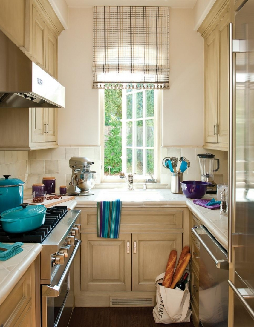 Một căn bếp nhỏ có thể được trang bị nội thất đẹp và thiết thực bằng cách sử dụng lời khuyên của chuyên gia và ví dụ về các giải pháp có sẵn trên Internet