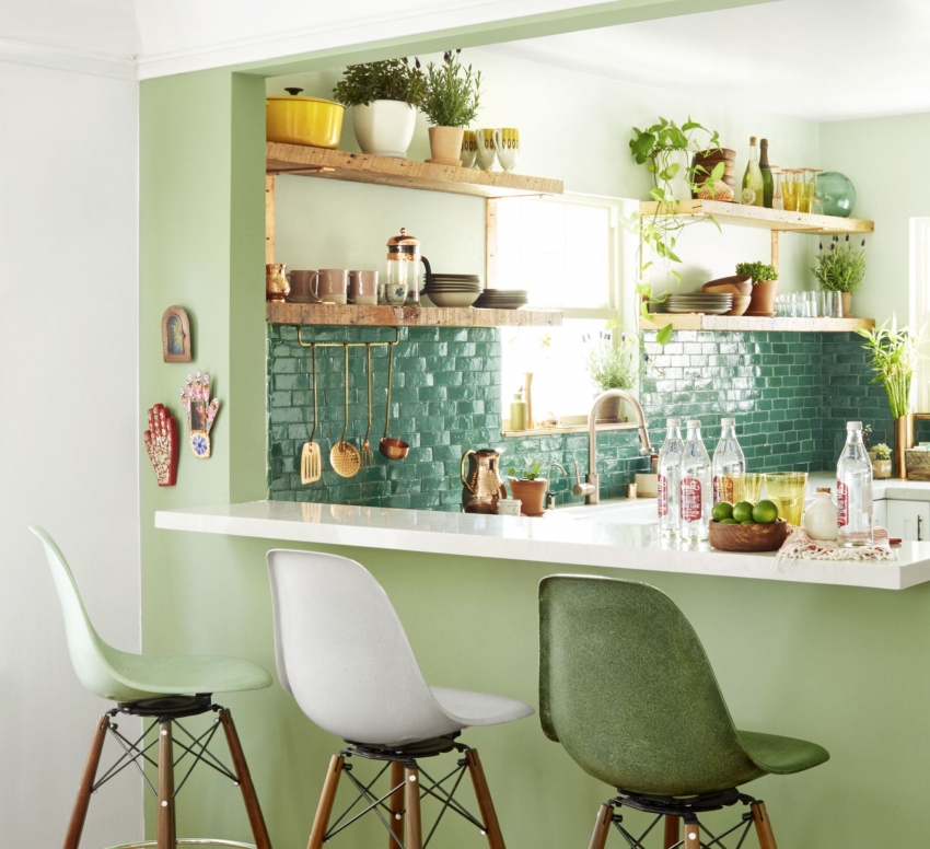 Sắc thái tươi sáng bộ bếp phải được kết hợp với các tông màu trung tính, dịu hơn
