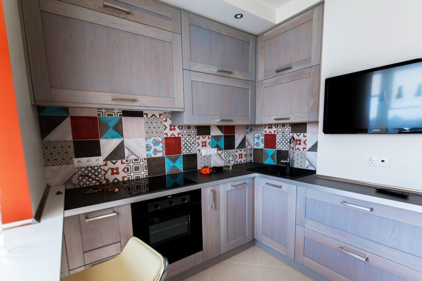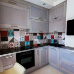 Lời khuyên hữu ích! Việc sử dụng các mẫu và hình vẽ là một chủ đề riêng biệt trong thiết kế một căn bếp nhỏ ở Khrushchev. Các chuyên gia không khuyến khích sử dụng các kỹ thuật như vậy, chỉ cho phép các mẫu nhỏ làm điểm nhấn nhỏ trên một số bề mặt. Bất kỳ bản vẽ lớn sẽ chỉ làm giảm không gian.