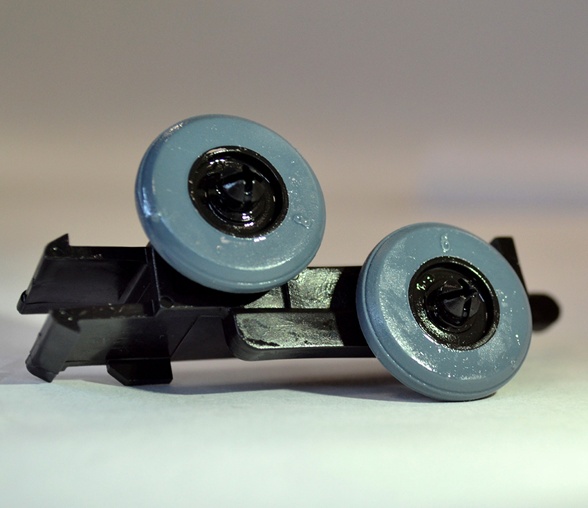 - bánh xe chạy trên tấm kim loại dưới của bộ định vị;