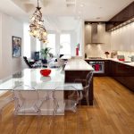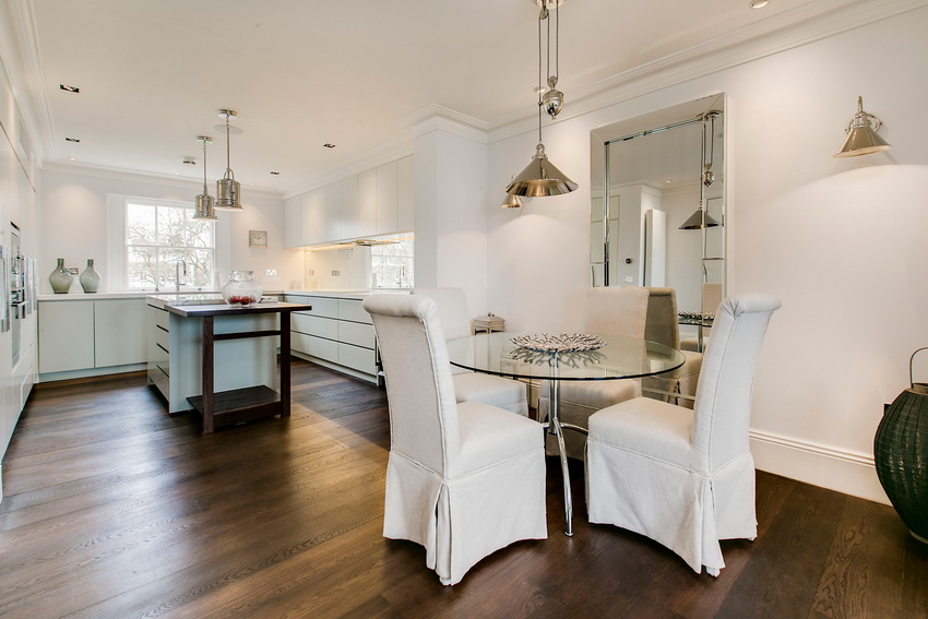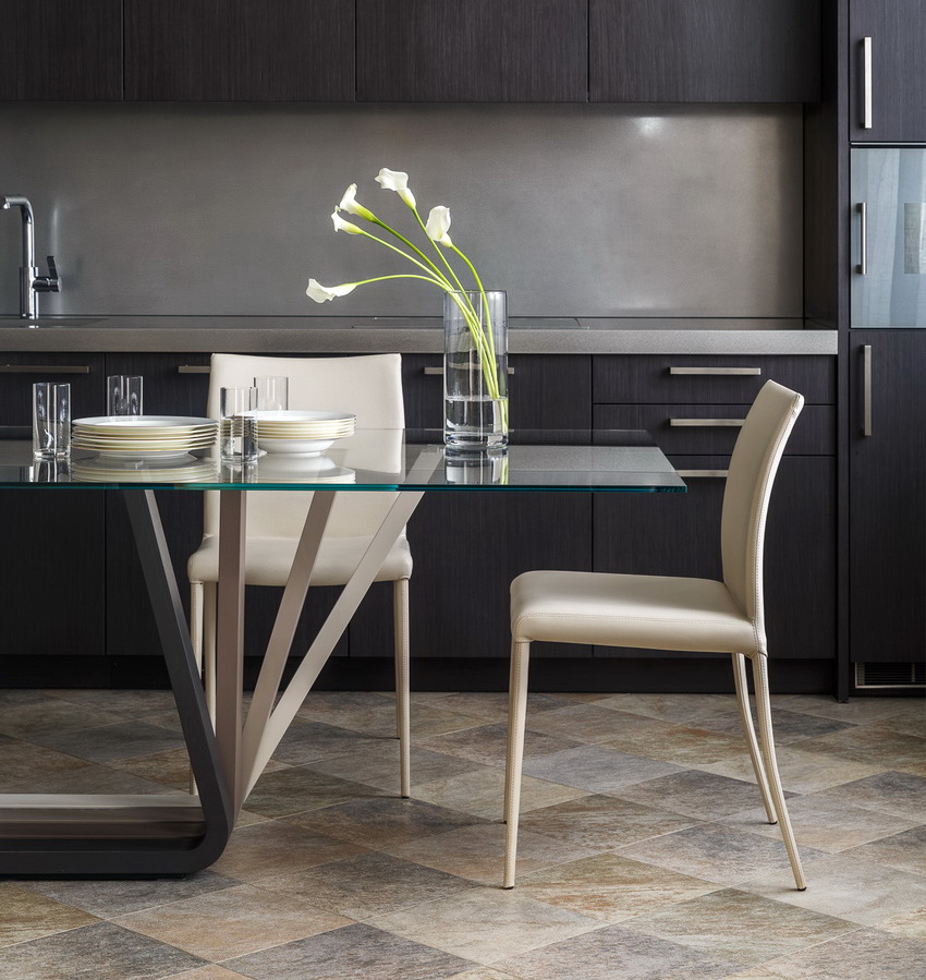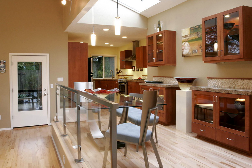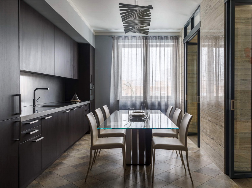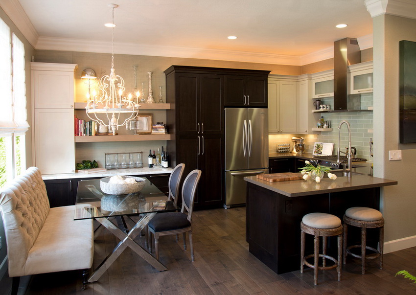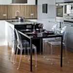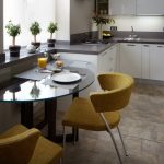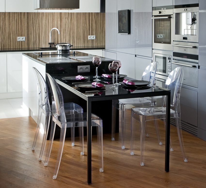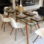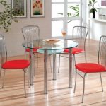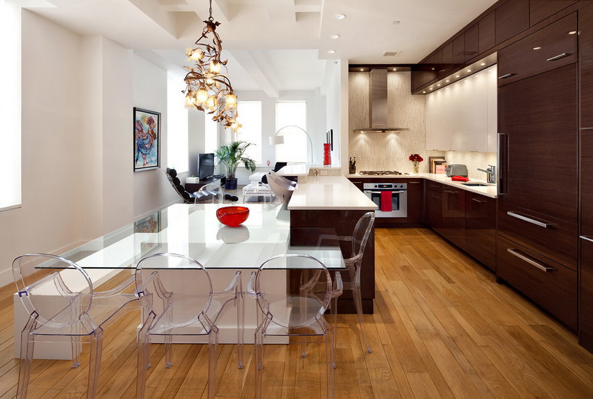 Sự kết hợp giữa bàn kính với những chiếc ghế cao cấp tinh tế sẽ thêm phần độc đáo. Các sản phẩm như vậy đa dạng hóa và trang trí bất kỳ nhà bếp hoặc phòng khách.