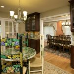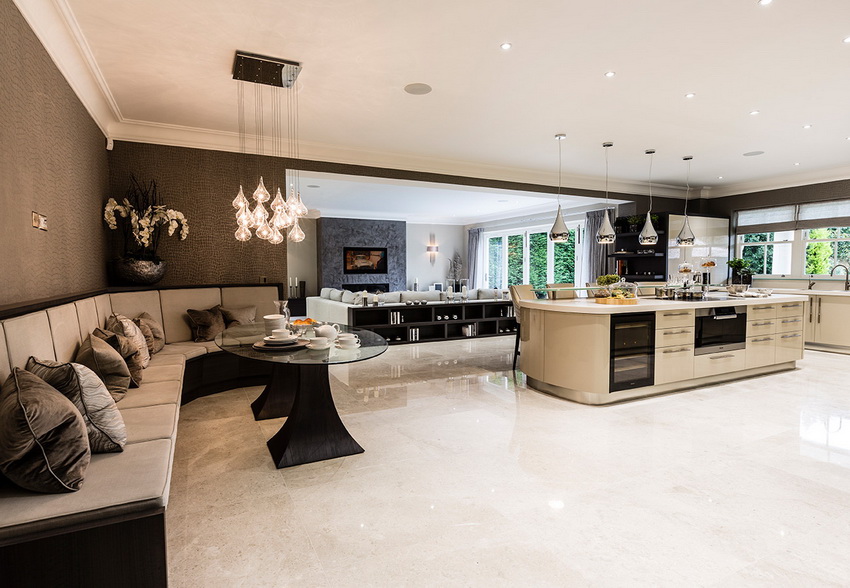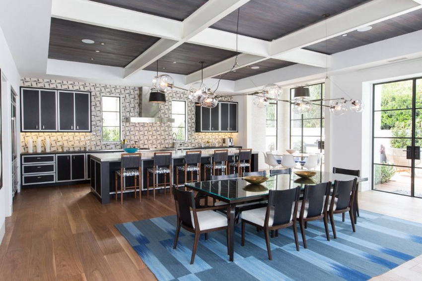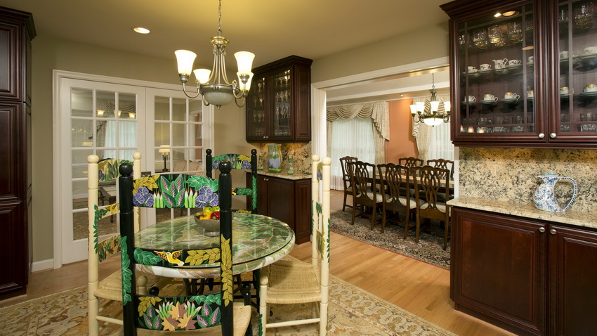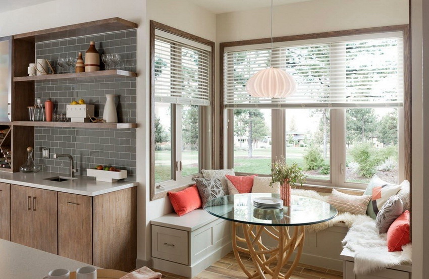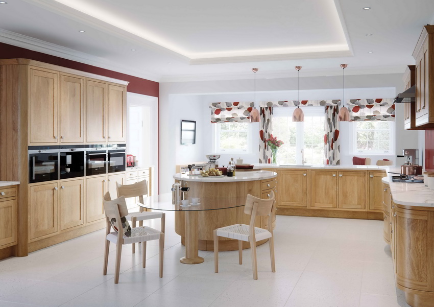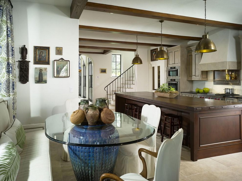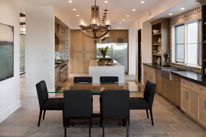 Bàn ăn đóng một vai trò quan trọng trong khu vực ăn uống, bởi vì nó là phía sau anh ta mà cả gia đình sẽ dành rất nhiều thời gian. Tiện dụng và đẹp mắt nhất là bàn bếp hình tròn. Một số lượng lớn khách có thể dễ dàng xếp sau nó.