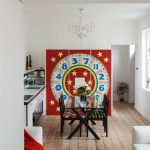 Bạn có thể tạo điểm nhấn tươi sáng trên chiếc bàn tròn trong suốt bằng cách chọn những chiếc ghế màu cho nó