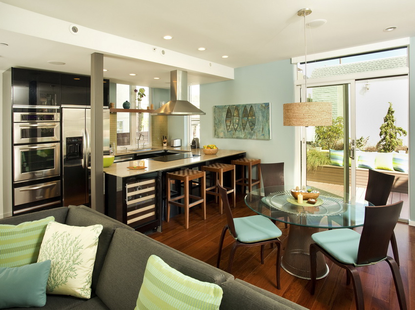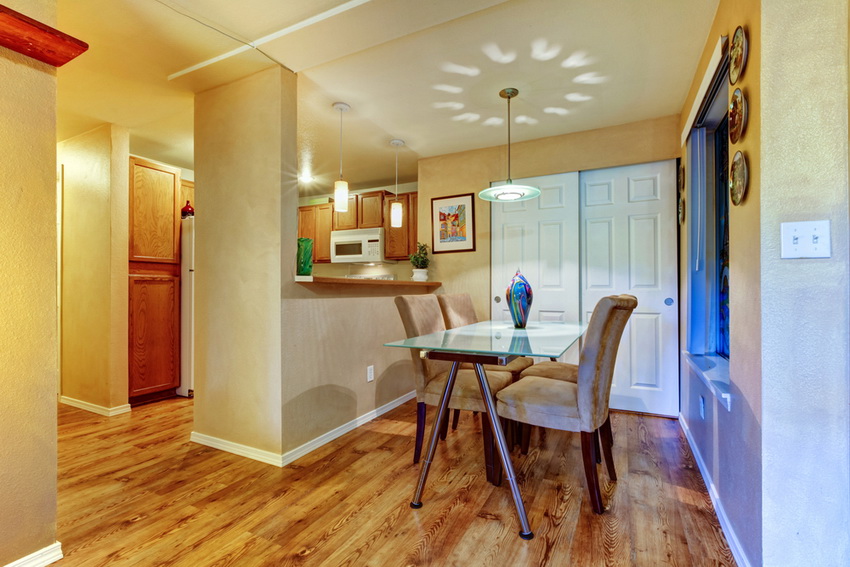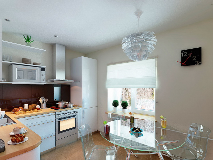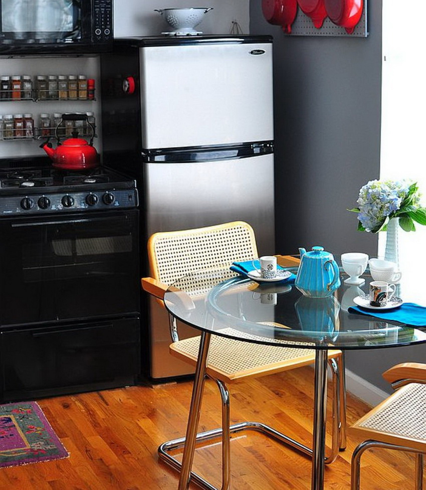 Chủ nghĩa tối giản là rất tốt cho phòng khách và nhà bếp nhỏ, cũng như cho các phòng khá rộng rãi. Một chiếc bàn kính nhỏ (thay vì kết cấu gỗ đồ sộ) sẽ mang lại cảm giác nhẹ nhàng.