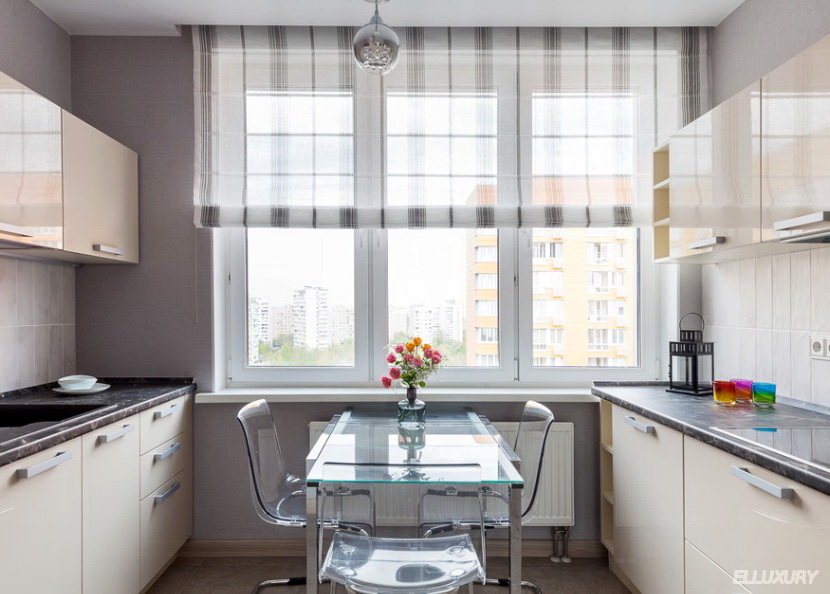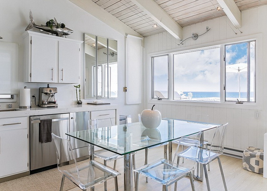 - Một chiếc bàn kính nhỏ cho phòng bếp sẽ trở thành một vật trang trí thực sự của căn phòng.