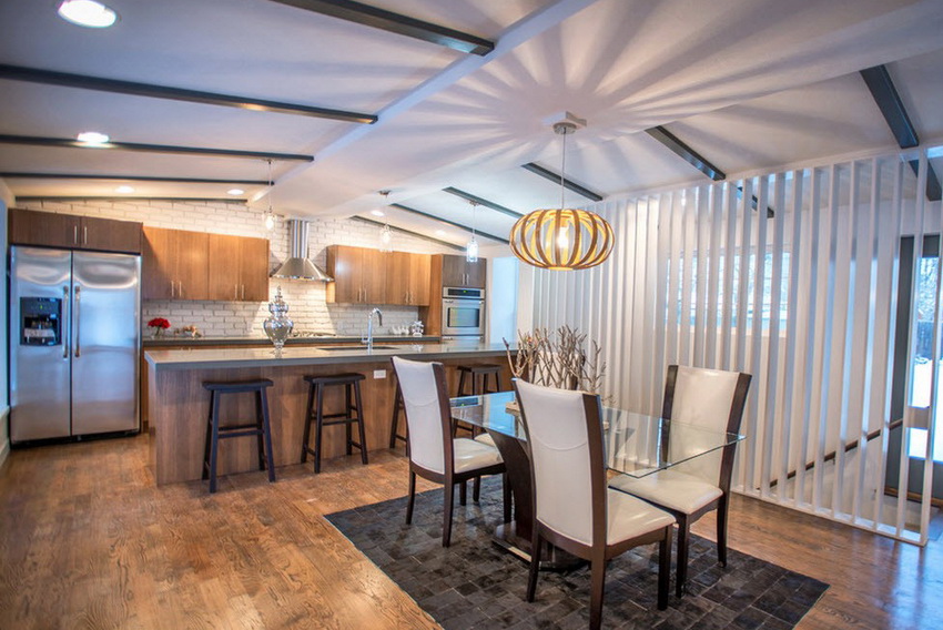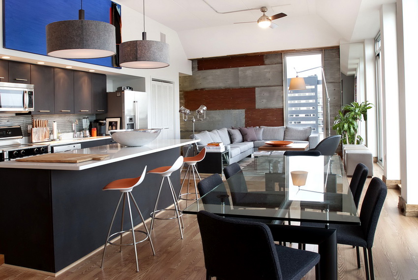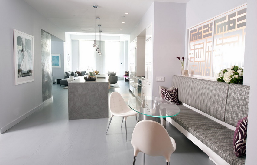 Các tùy chọn thiết kế hiện đại và phân vùng không gian cung cấp nhiều giải pháp được sử dụng theo bất kỳ phong cách và hướng nào. Việc sử dụng đồ nội thất bằng kính là rất thiết thực và tiện lợi, bởi vì kính kết hợp hoàn hảo với các vật liệu khác như gỗ, kim loại và đá. Thông thường, bề mặt kính được kết hợp với các chi tiết và bộ phận mạ crôm.