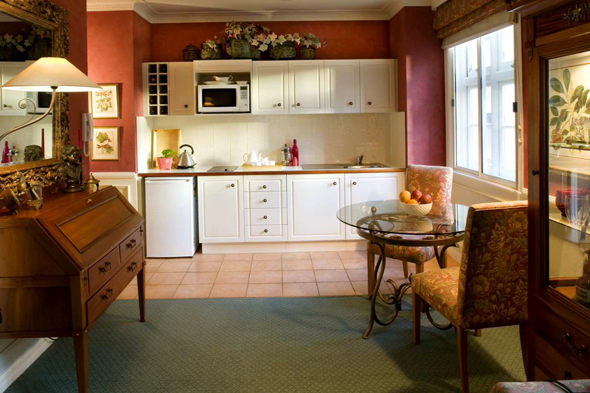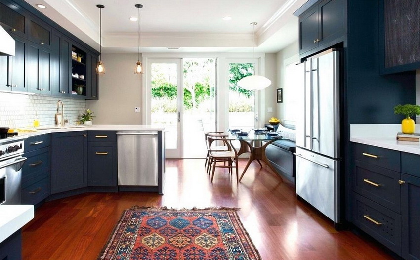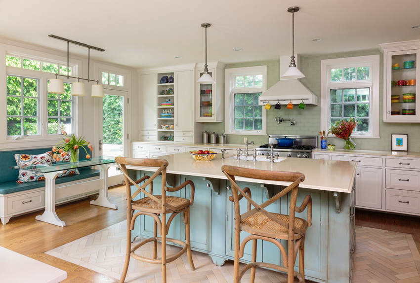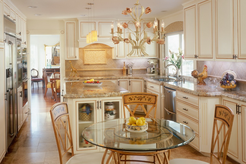Quốc gia là một hướng dân chủ, trong đó một mặt bàn làm việc bằng kính khác thường sẽ hoàn toàn phù hợp và tạo điều kiện thuận lợi để làm việc trong nhà bếp. Thể loại này cung cấp nhiều cơ hội và cho phép bạn thực hiện hoàn toàn mọi ý tưởng về phong cách và màu sắc.