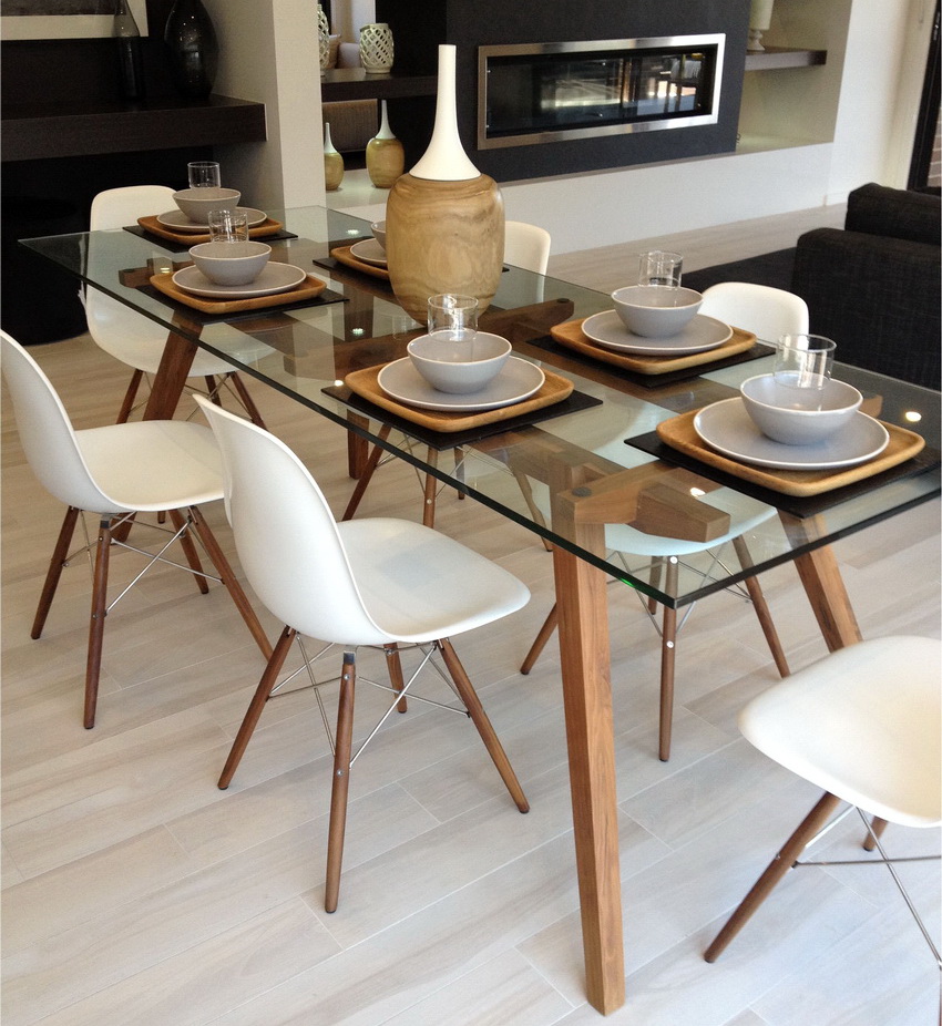 Mặt bàn bằng kính, khung bằng gỗ, trông sẽ không quá "lạnh" và phù hợp với phong cách cổ điển, Provence và đồng quê