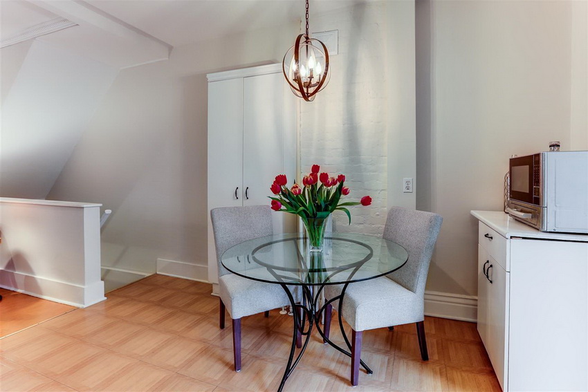 - Đối với căn phòng nhỏ thì nên chọn bàn bếp tròn có một chân sẽ tiết kiệm diện tích hơn. Bạn cũng có thể xem xét một tùy chọn gấp để gắn vào tường.