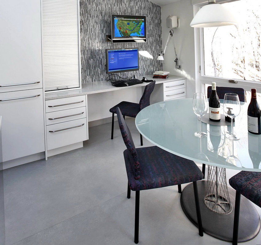 Nó là thú vị! Bàn bếp bằng kính rất lý tưởng cho những người yêu thích sự thiết thực và không gian tự do, đồng thời cũng là vật dụng không thể thiếu của những chủ nhân có căn bếp nhỏ. Những sản phẩm như vậy rất dễ sắp xếp lại từ nơi này sang nơi khác, có nghĩa là bàn có thể được di chuyển liên tục từ phòng bếp sang phòng khách và ngược lại.