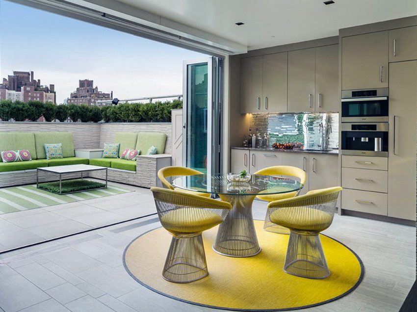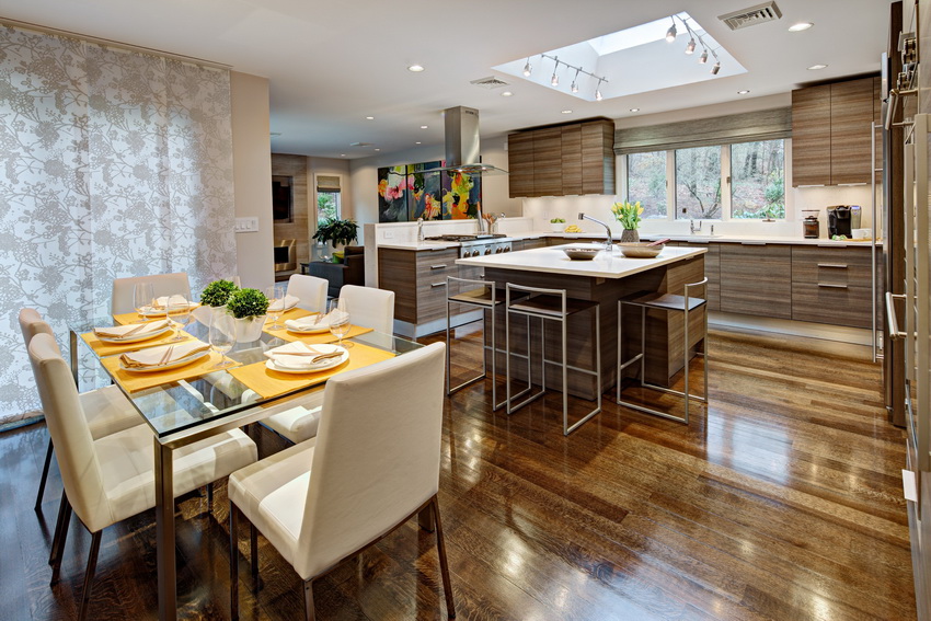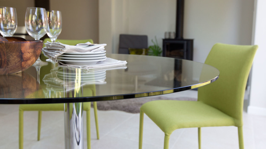 Những món đồ nội thất này có lợi nhất cho việc trang trí nhà bếp theo phong cách hiện đại. Trong những phòng khách rộng, có thể đặt một bộ bàn ghế với mặt kính ở chính giữa căn phòng. Trong trường hợp này, nó sẽ trở thành chi tiết chính của nội thất. Ngoài ra, đồ nội thất có thể được đặt ở góc phòng hoặc bên cạnh, điều này sẽ không làm cho đồ nội thất này trở nên kém chú ý hoặc kém hấp dẫn.