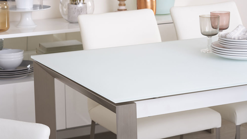 Chỉ cần lau bề mặt của mặt bàn bằng một miếng bọt biển ẩm vì nó bị bẩn, sau đó lau khô mặt bàn bằng khăn.Bàn mờ thực tế hơn và bề mặt bóng sẽ phải được chăm sóc cẩn thận hơn bằng cách sử dụng chất tẩy rửa kính.