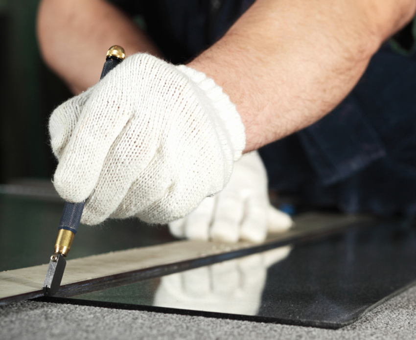 Đặt kính cho bàn trên một mặt phẳng. Sau đó, bạn cần đánh dấu bằng bút chì và chỉ sau đó cắt vật liệu. Để cắt, bạn cần làm ẩm dụng cụ bằng dầu thực vật, gắn thước vào các vạch và đi dọc theo đường bằng dao cắt thủy tinh. Kết quả là, một vết lõm nhẹ sẽ vẫn còn trên tấm kính.