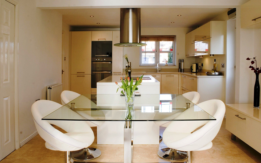 Bàn kính trong bếp: Cách kết hợp với phong cách nội thất