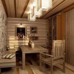 Để tạo ấn tượng tổng thể của bồn tắm dễ chịu, cần phải tạo ra một nội thất thú vị đã có trong phòng thay đồ. Nó là mong muốn để làm đồ nội thất từ một loại gỗ. Trong phòng thay đồ, gỗ thông rẻ tiền sẽ khá được chấp nhận. Các đồ nội thất chính nên có cùng màu. Bạn có thể sử dụng các sắc thái khác, nhưng chỉ để trang trí các đồ nội thất riêng lẻ.
