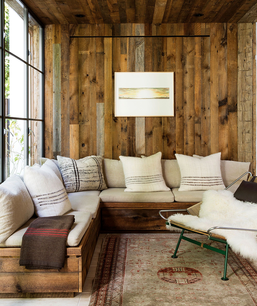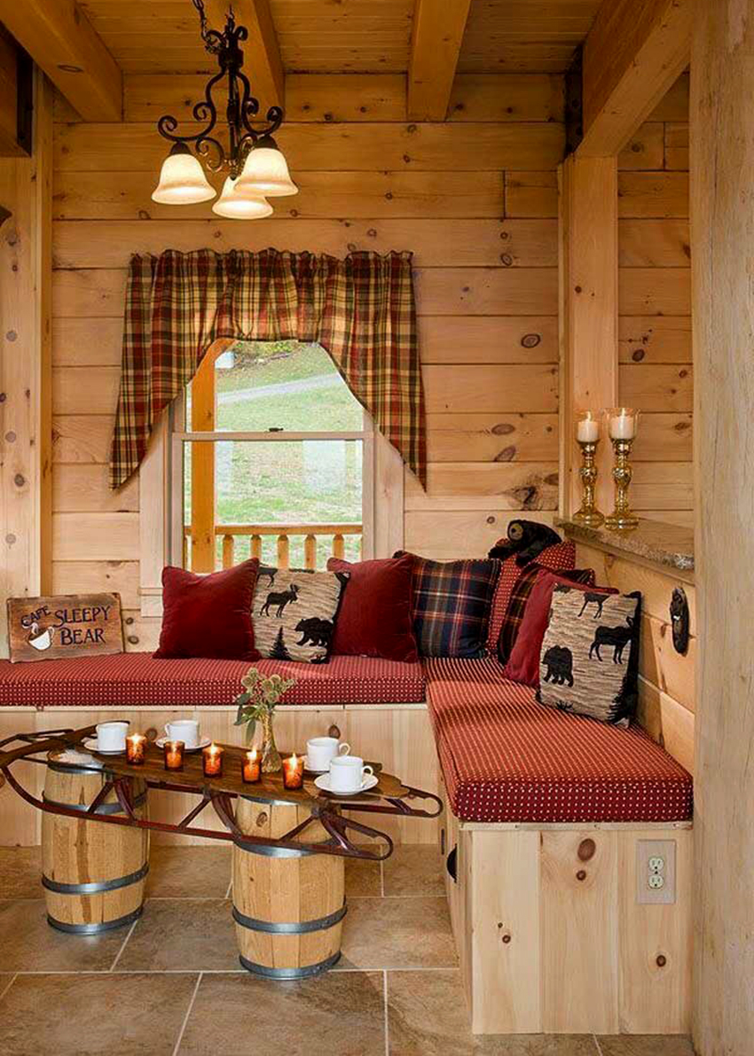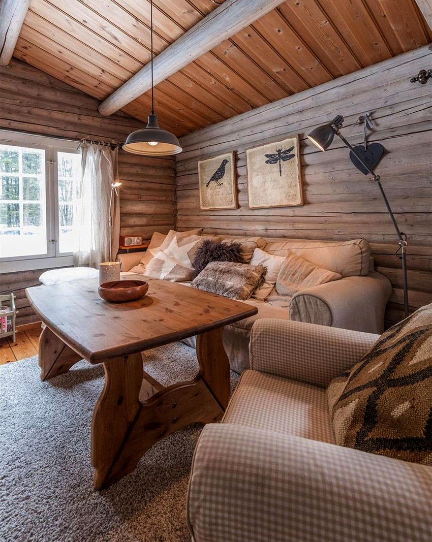 Nếu phòng nghỉ chỉ có thể kê một chiếc bàn và những chiếc ghế dài, bạn không nên tuyệt vọng. Một vài túi lanh, được trang trí bằng các yếu tố tự nhiên (đậu Hà Lan, hạt thông hoặc lanh, hạt hướng dương), chứa đầy các loại thảo mộc thơm để uống trà, được treo khéo léo trên tường, sẽ tạo cho căn phòng một nét độc đáo.