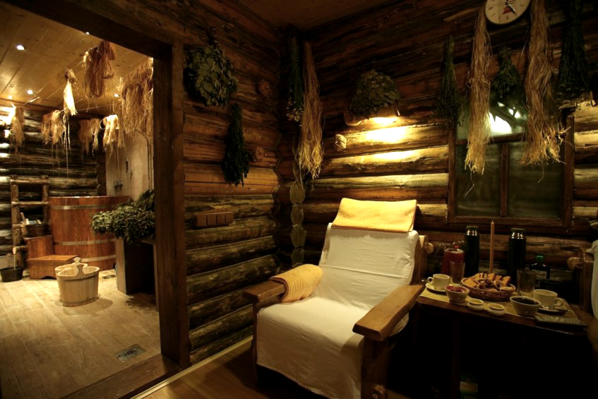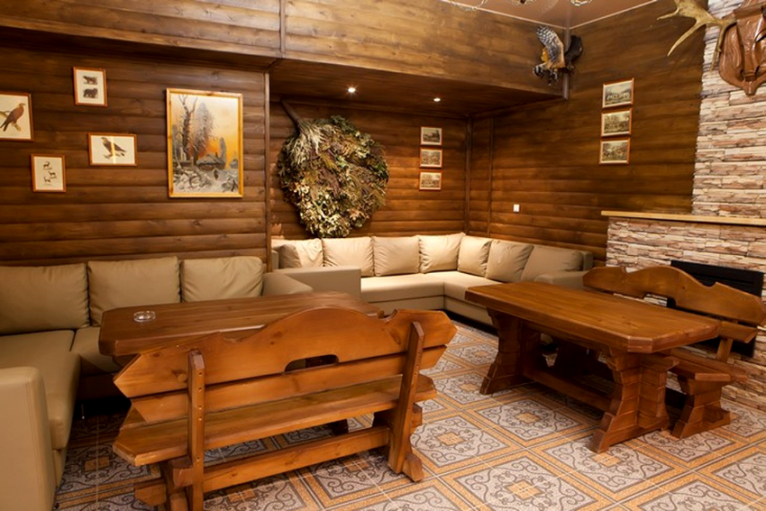 Nghỉ ngơi trong nhà tắm có những điểm khác biệt đáng kể so với nghỉ ngơi trong bất kỳ phòng nào khác: tình trạng thể chất đặc biệt, ham muốn giao tiếp, không muốn nghỉ hưu. Do đó, phòng nghỉ cần có một bộ bàn ghế (hoặc đồ nội thất chỗ ngồi khác) để mọi người lại với nhau bên tách trà. Yêu cầu bắt buộc: bề mặt của đồ nội thất đó phải được chà nhám hoàn hảo để cơ thể không cảm thấy khó chịu khi chạm vào. Điều cần thiết là kích thước của mặt bàn cho phép lắp đặt các ổ cắm với mứt và mật ong, cũng như một samovar - một thuộc tính cần thiết của một bồn tắm Nga thực sự.