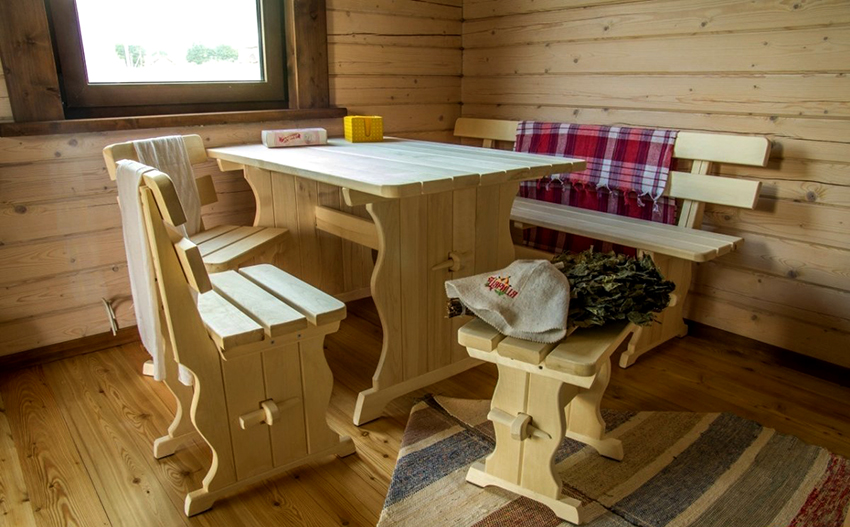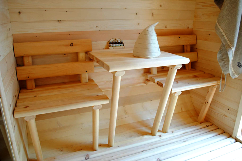 Nếu không có cơ hội hoặc cảm hứng để tự lắp ráp, bạn có thể mua đồ nội thất cho phòng tắm và phòng xông hơi khô. Các mạng lưới giao dịch có rất nhiều mẫu mã đa dạng, từ bàn và ghế dài cách điệu dệt kim thô sơ đến tủ gỗ sồi chạm khắc và ghế bập bênh có thiết kế riêng. Sự lựa chọn chủ yếu phụ thuộc vào sở thích và khả năng tài chính.