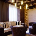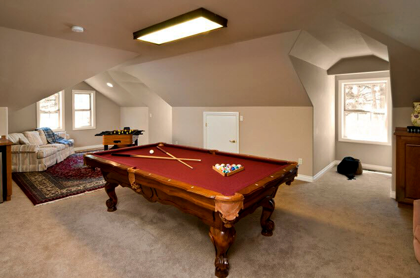 Chỉ nên trang trí trần nhà trong phòng giải trí nếu nó cao. Các chùm tia, lưới, đèn, được xây dựng thành các khu được thiết kế đặc biệt, làm cho phần trên của căn phòng trở nên biểu cảm, nhưng ở vị trí thấp, chúng "đè bẹp", "hạ cánh" căn phòng. Sự ấm cúng được tạo ra bởi ánh sáng lan tỏa dịu nhẹ.