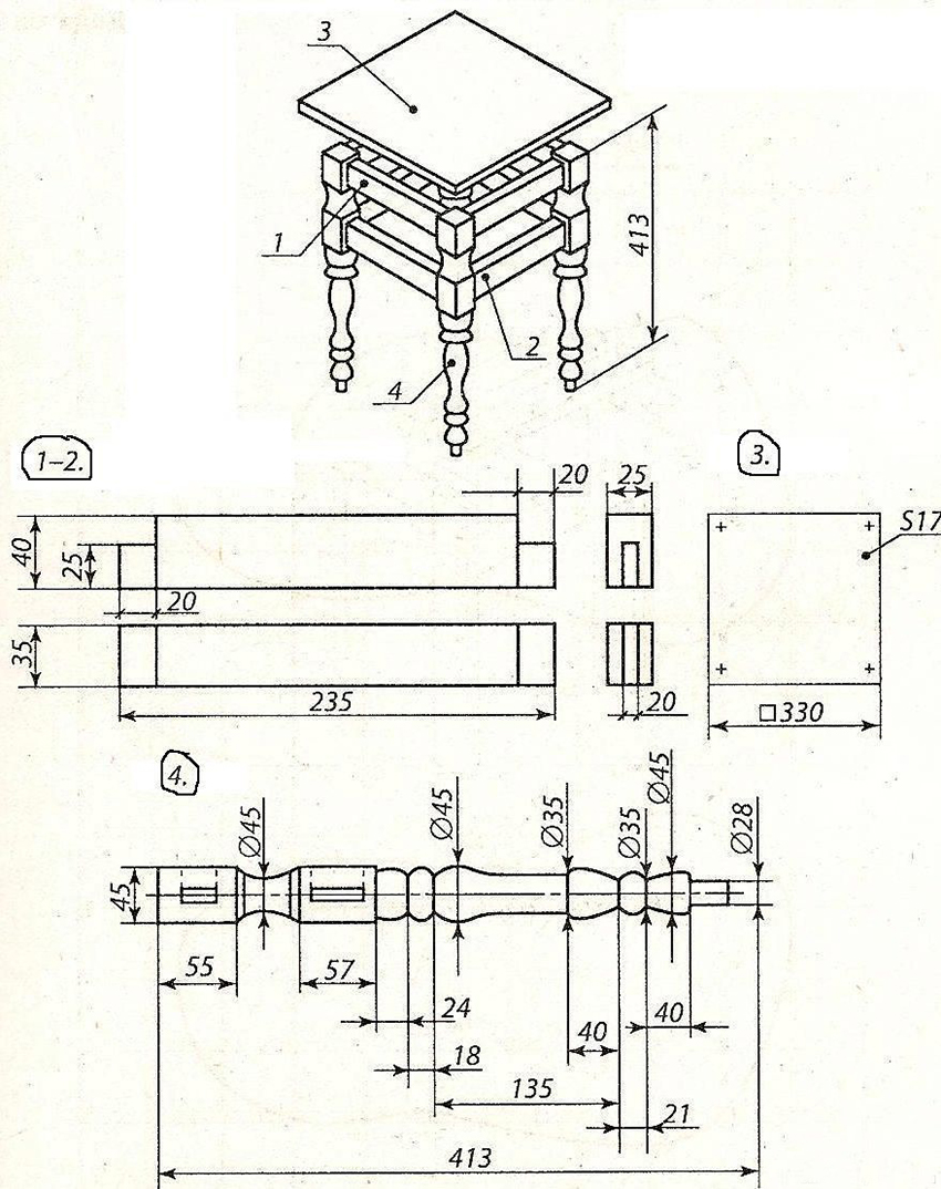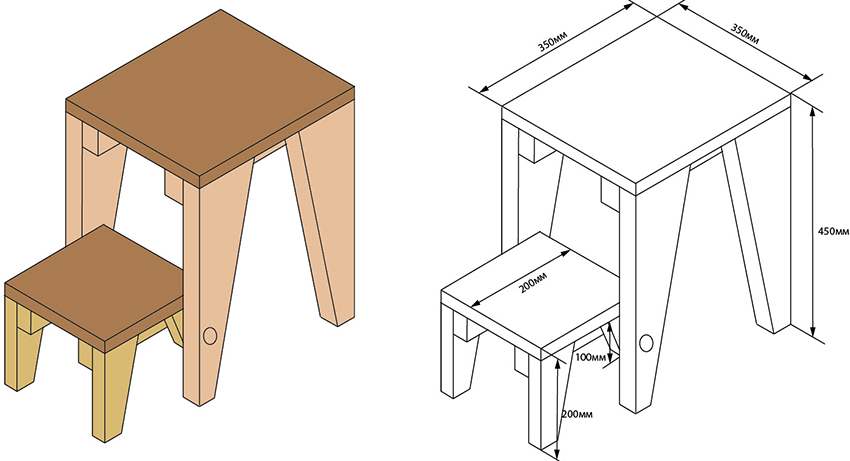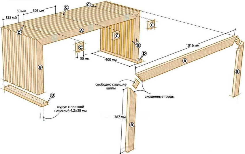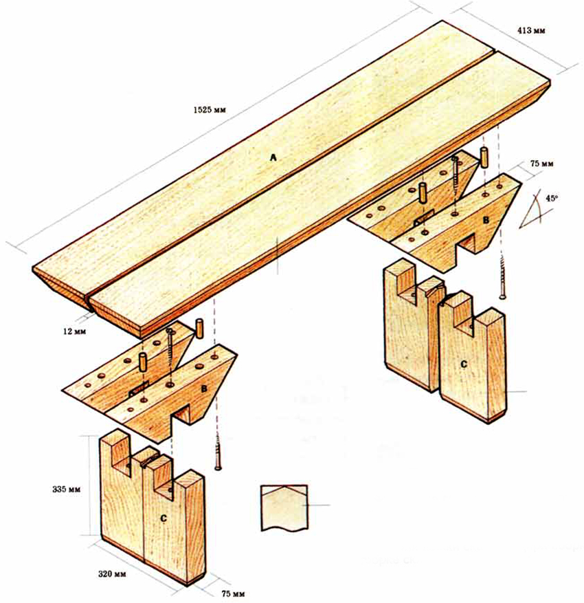 Việc xây dựng hóa ra không thô, ổn định và linh hoạt. Bạn có thể đặt băng ghế gần nó, Nhiều cái ghế, ghế sofa nhỏ và ghế bành. Ghế cũng có thể được làm bởi chính bạn. Các khoảng trống sau phải còn trong kho: