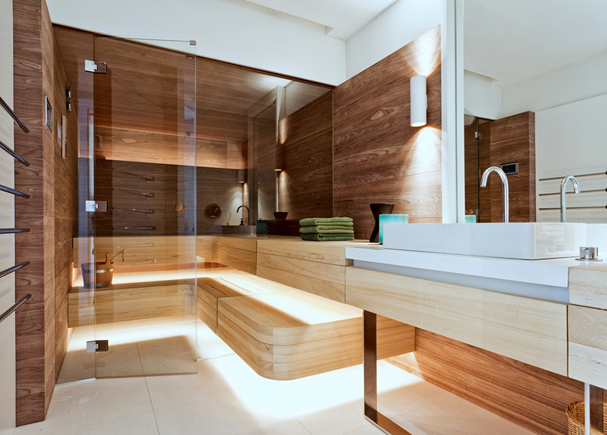 Đồ nội thất bằng gỗ cho phòng tắm và phòng xông hơi khô là trung tâm của bất kỳ phong cách nội thất nào