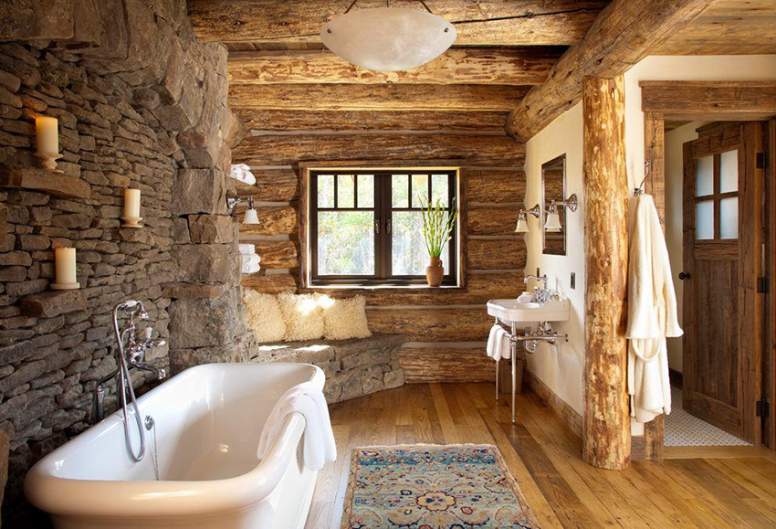Nếu thiết kế của đồ nội thất đơn giản và khiêm tốn, bạn nên trang trí nội thất phòng tắm với các mảng tường làm bằng chất liệu tự nhiên, khăn tắm, kệ đựng bát đĩa và các chi tiết khác.