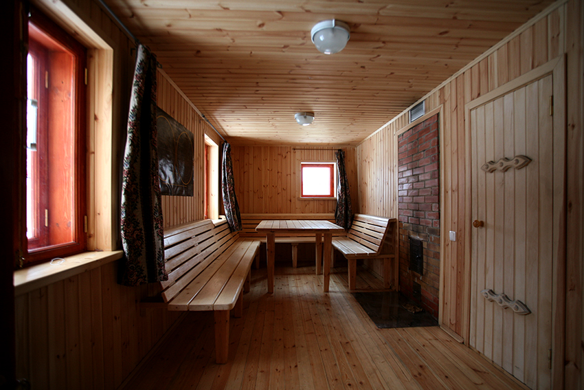 Lời khuyên hữu ích! Nếu nội thất cho bồn tắm bằng gỗ thông, cần làm nóng phòng xông hơi ướt 3-4 lần trong thời gian vắng khách, đưa nhiệt độ lên mức tối đa. Điều này sẽ giúp loại bỏ nhựa khỏi gỗ.