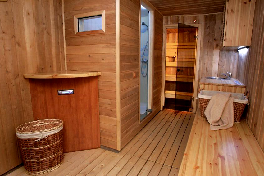 Bộ nội thất làm sẵn cho phòng tắm và phòng xông hơi khô: điều kiện lựa chọn