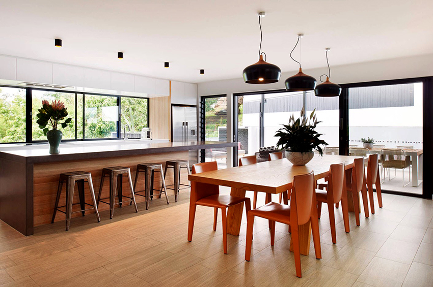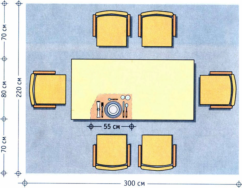 Khi lựa chọn kích thước bàn ăn phù hợp, bạn cần lưu ý rằng nó phải thuận tiện khi sử dụng: di chuyển ghế ra xa mà không gặp trở ngại, tạo lối đi thuận tiện giữa mặt bàn ăn và nhóm đồ nội thất khác. Khoảng cách ít nhất 1 m được coi là tối ưu cho một nhà bếp tiêu chuẩn.