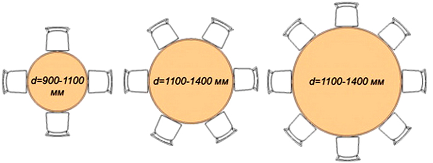 Quan trọng! Đối với bàn tròn, chiều rộng tối ưu được tăng lên 0,9 m.