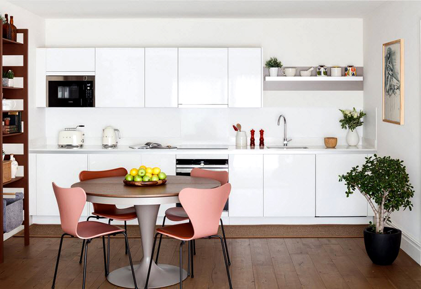 Đối với một gia đình nhỏ từ 2-3 người, bàn ăn tròn cho căn bếp nhỏ là phù hợp, vừa vặn cho bạn ngồi. Tốt hơn là cài đặt cấu trúc ở góc. Bàn vuông cũng là một lựa chọn tốt cho không gian nhỏ. Nếu ưu tiên thiết kế hình chữ nhật, tốt hơn hết bạn nên đặt bàn bếp nhỏ gần cửa sổ hoặc dọc theo bức tường trống.