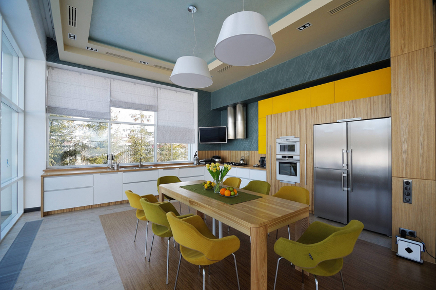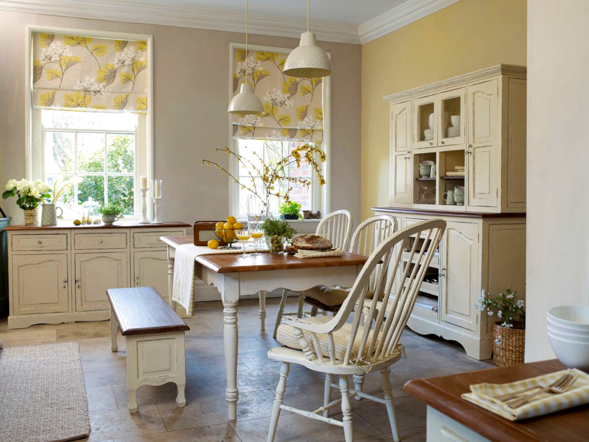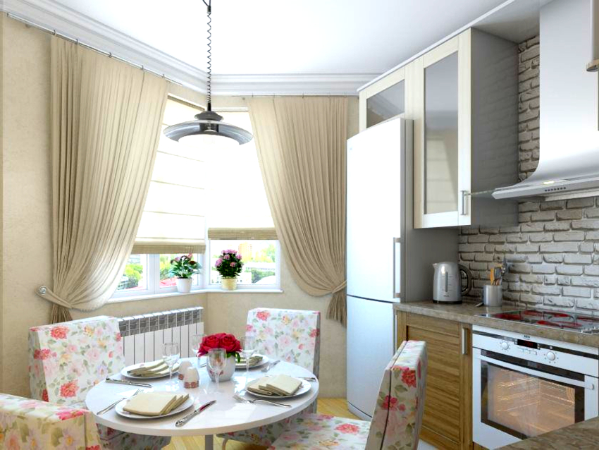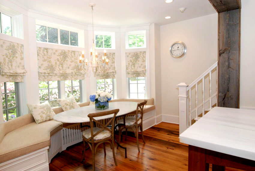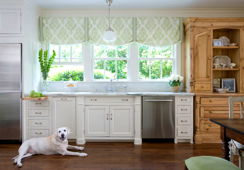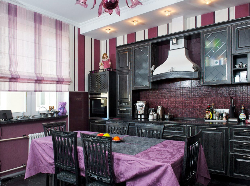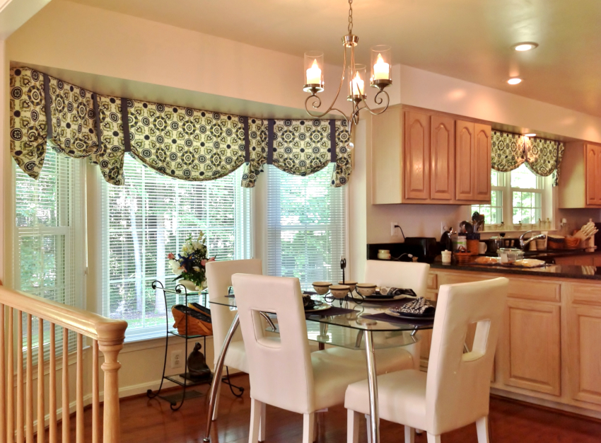Khi nói đến việc tạo ra một nội thất nhà bếp, kết hợp với phòng ăn hoặc phòng khách, bạn có thể kết hợp rèm cửa cổ điển và rèm xếp tầng, để sản xuất một loại vải sẽ được sử dụng. Như vậy, bạn không chỉ có thể trang trí cửa sổ mà còn có thể khoanh vùng căn phòng.