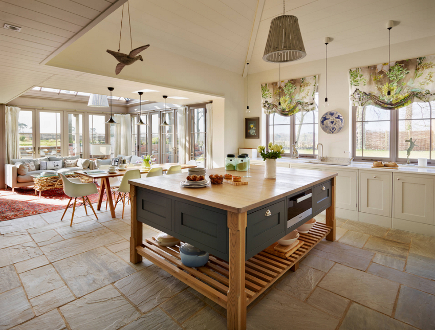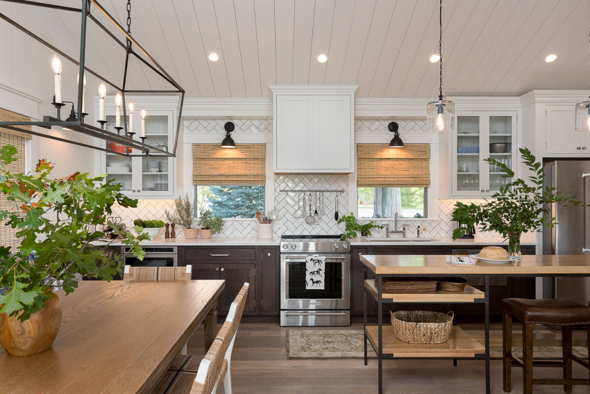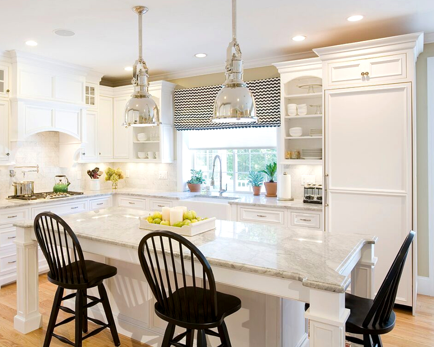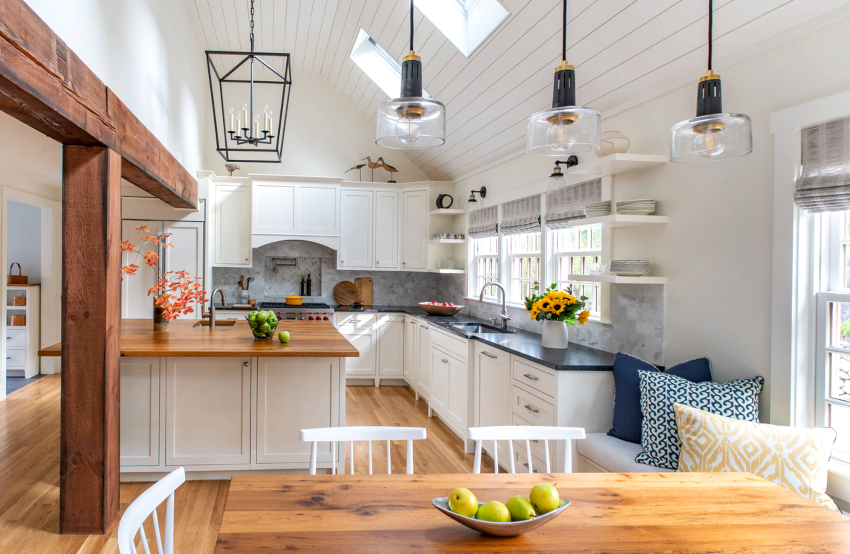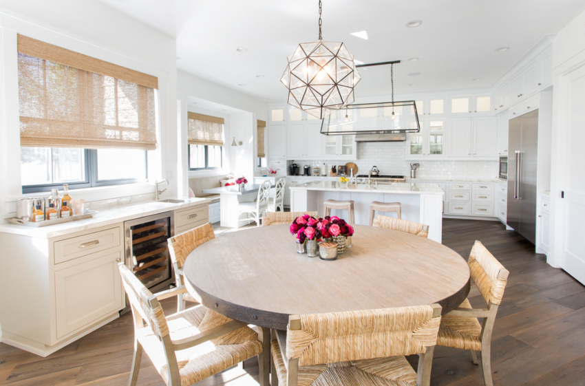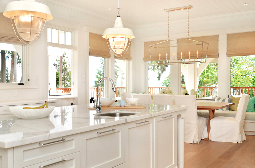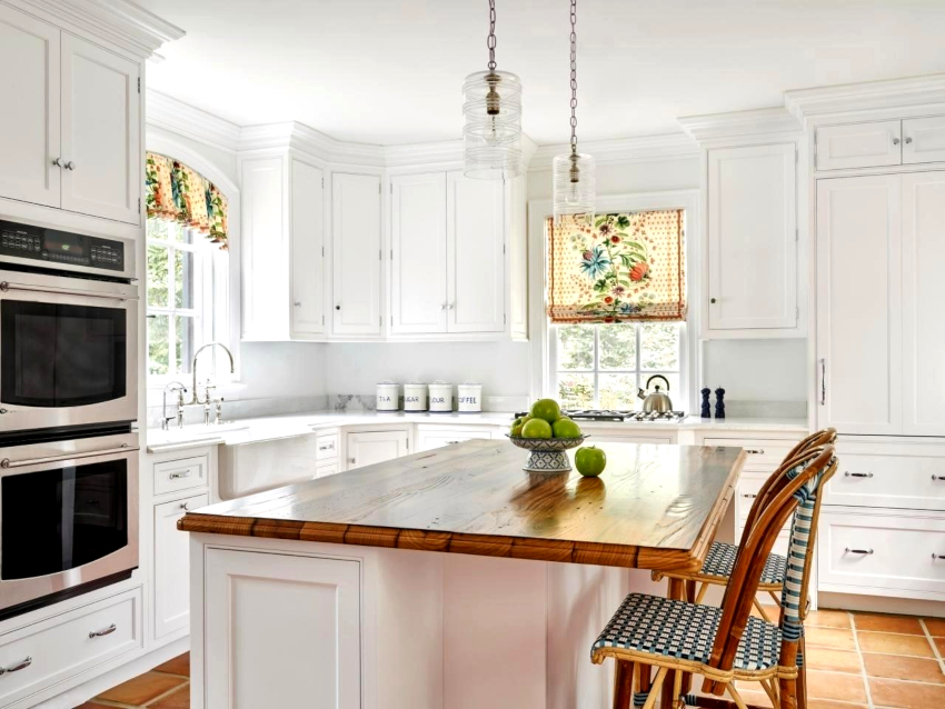 Khi nói đến việc tạo ra một nội thất nhà bếp, kết hợp với phòng ăn hoặc phòng khách, bạn có thể kết hợp rèm cửa cổ điển và rèm xếp tầng, để sản xuất một loại vải sẽ được sử dụng. Như vậy, bạn không chỉ có thể trang trí cửa sổ mà còn có thể khoanh vùng căn phòng.
