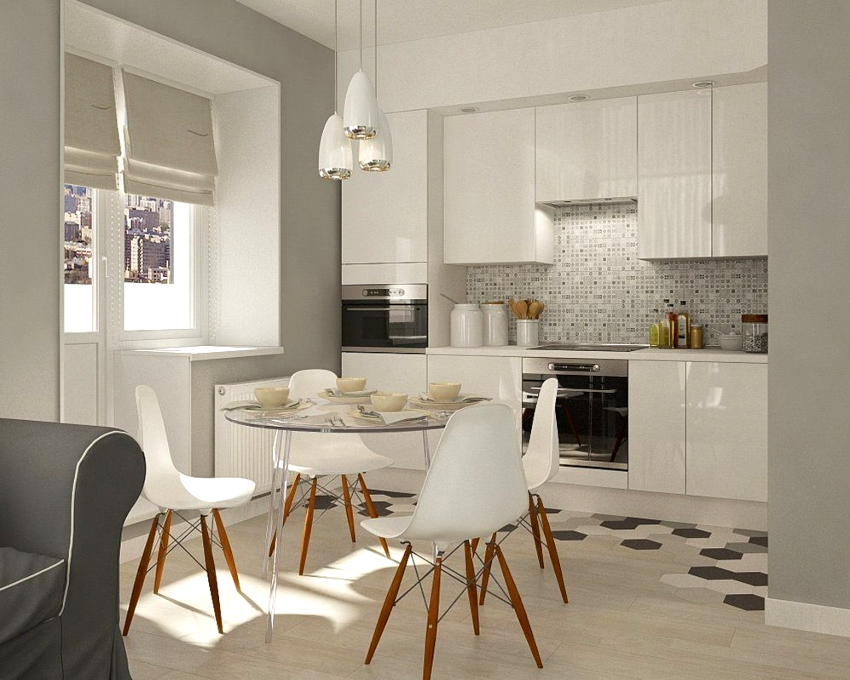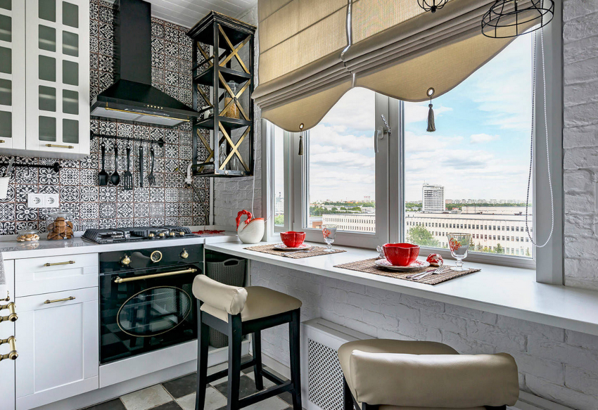 Lời khuyên hữu ích! Một lựa chọn tốt là lắp đặt rèm cửa kiểu La Mã trong nhà bếp với ban công, nơi tổ chức khu vực ăn uống riêng biệt.