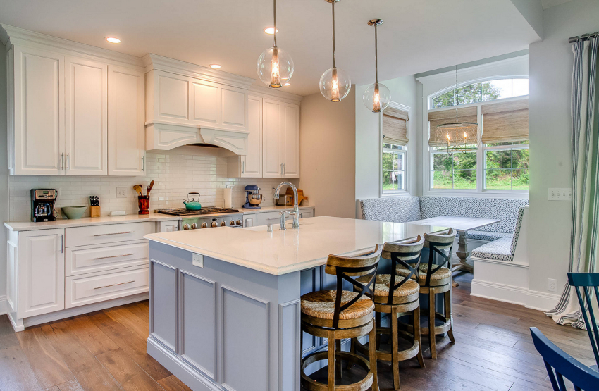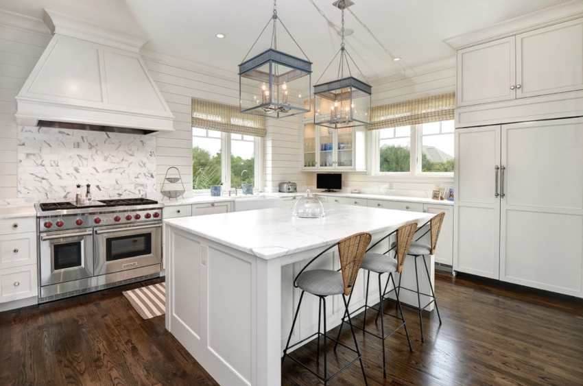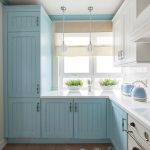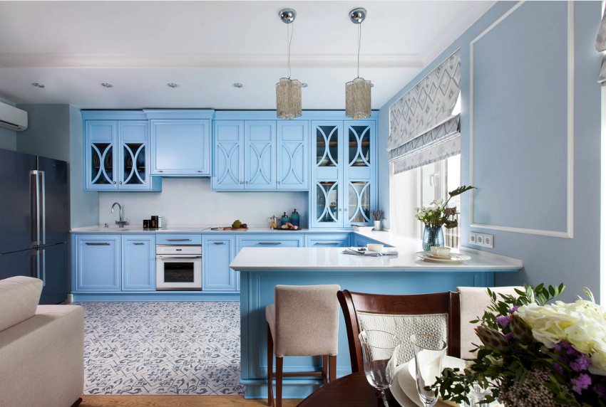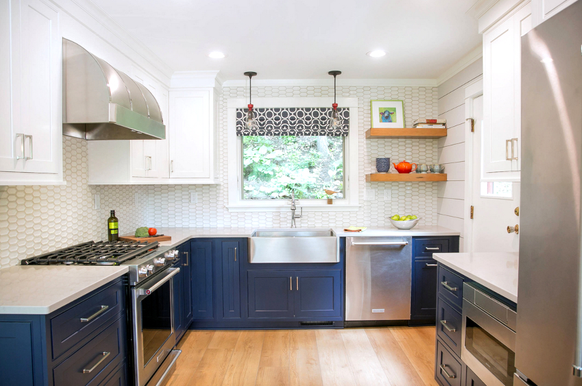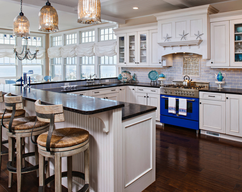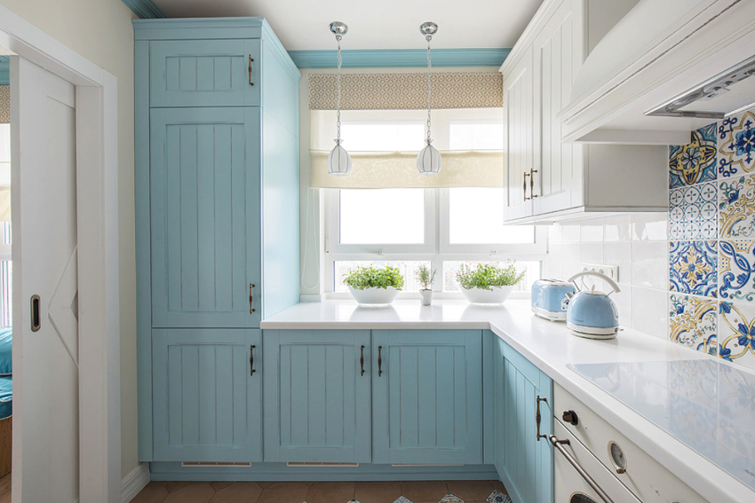 - Phong cách Scandinavian hay phong cách hải lý có xu hướng được sử dụng trong nội thất phòng bếp với gam màu xanh và trắng.