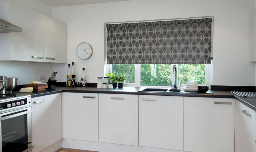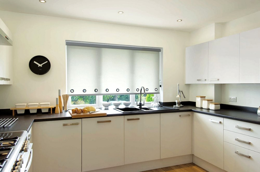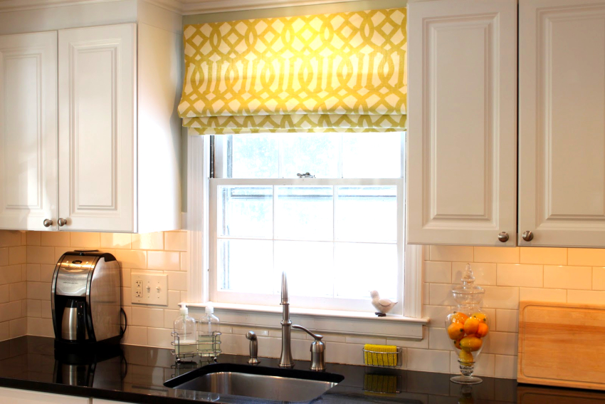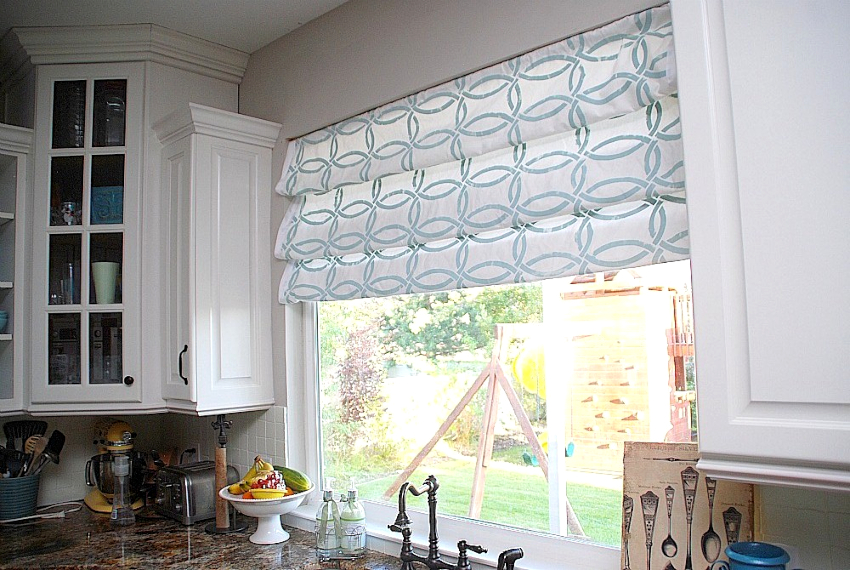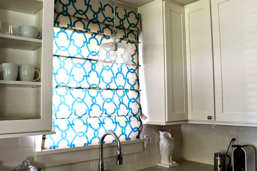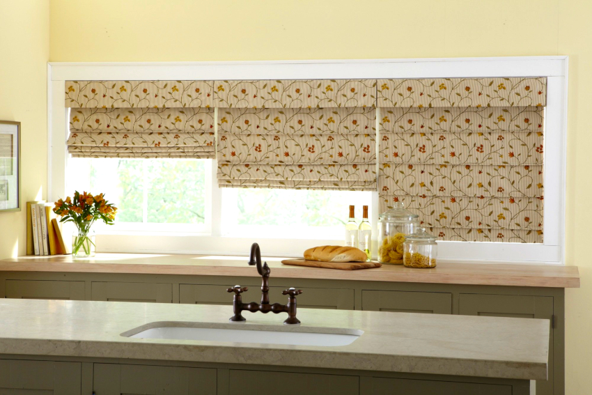 Hàng dệt hiện đại được coi là lựa chọn tốt nhất để tạo ra một thiết kế rèm cửa kiểu La Mã trong nhà bếp.