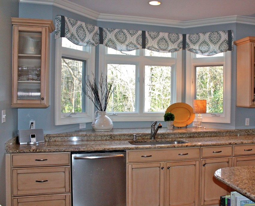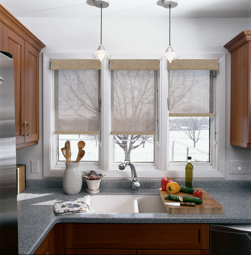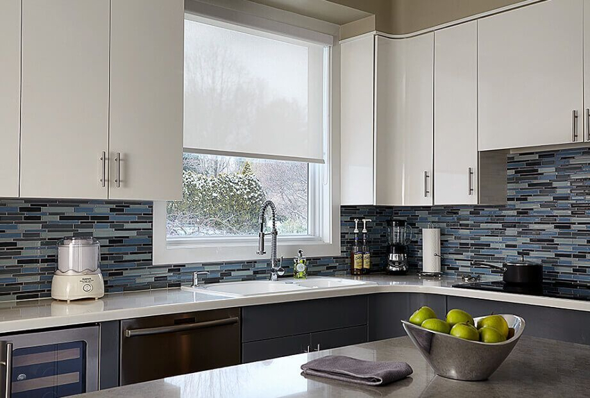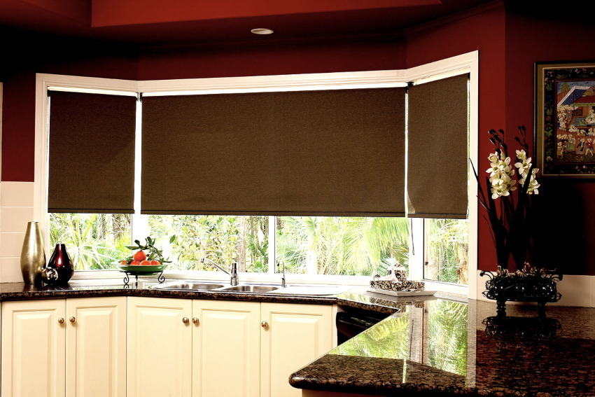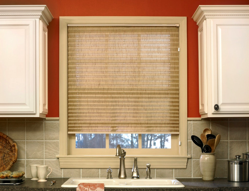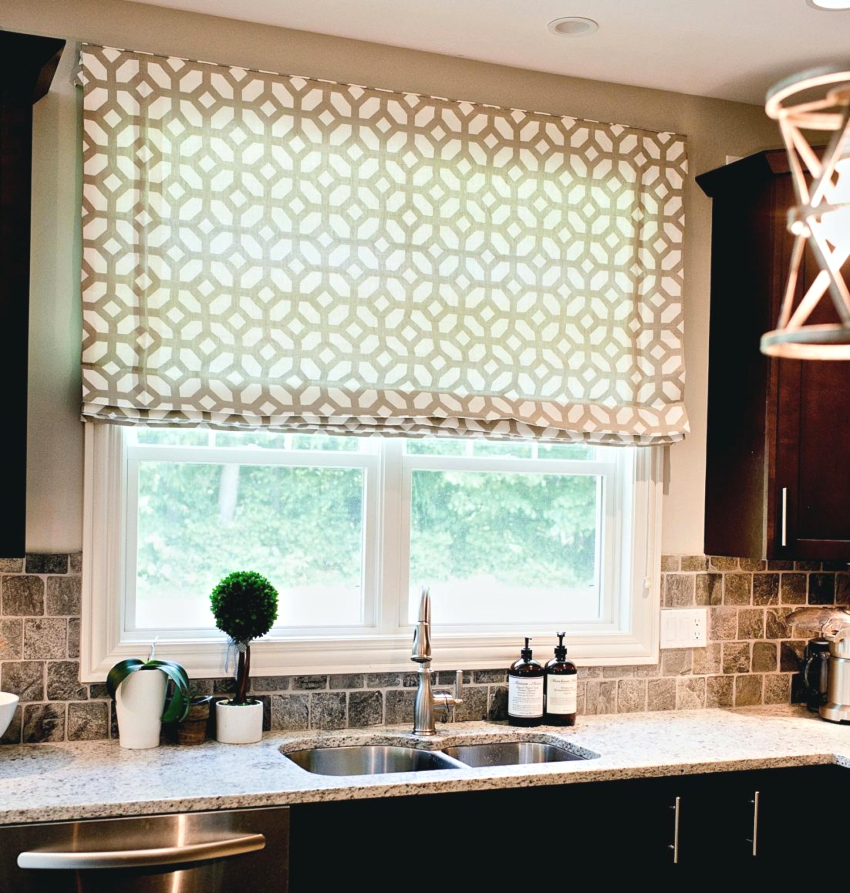 Hàng dệt hiện đại được coi là lựa chọn tốt nhất để tạo ra một thiết kế rèm cửa kiểu La Mã trong nhà bếp.
