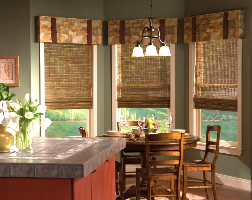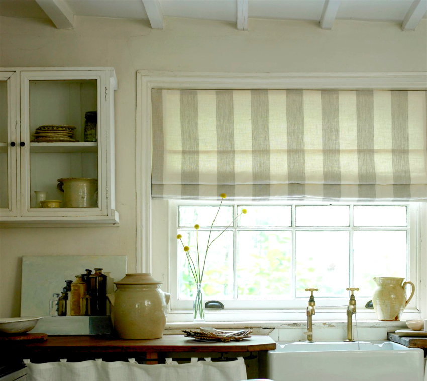 Khi lựa chọn màu sắc và thiết kế của rèm cửa Roman cho nhà bếp có cửa ra ban công hoặc chỉ là cửa sổ, người ta nên tiến hành từ các nguyên tắc của phong cách trang trí chung trong phòng.Vì vậy, với phong cách mộc mạc hoặc đồng quê trong nhà bếp, các sản phẩm vải lanh hoặc cotton từ vải lanh chưa tẩy trắng, được phân biệt bằng màu nâu nhạt, sẽ thích hợp. Một đường sọc sẽ trông đẹp trong cách phối màu này. Đặc điểm lựa chọn rèm cửa theo nhiều phong cách nội thất: