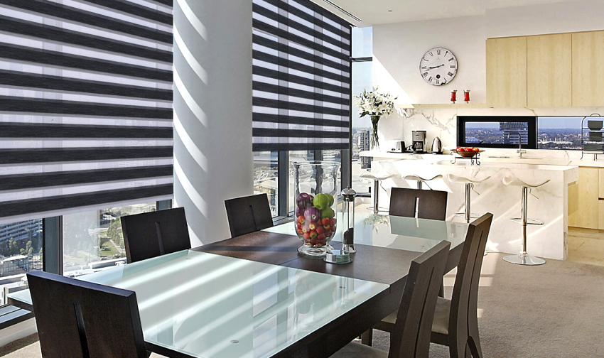 Trong trường hợp kết hợp các phòng, rèm Roman có thể đóng vai trò như một yếu tố phân vùng không gian. Trong tình hình như vậy, chỉ có rèm Roman được lắp đặt trong nhà bếp, trong khi ở khu vực tiếp khách hoặc ăn uống, chúng được bổ sung bởi những tấm rèm đẹp.