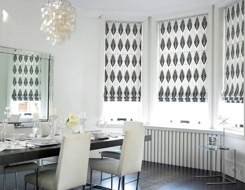 Rèm cửa La Mã, được phân biệt bởi các bản in lớn, được coi là một sự mới lạ thời trang, nhưng tốt hơn là sử dụng những tấm bạt như vậy trong một căn phòng rộng rãi. Để tạo ra một nội thất hấp dẫn và tươi mới, chỉ cần bổ sung màu nền với một mô hình tương phản bao gồm hai sắc thái là đủ.