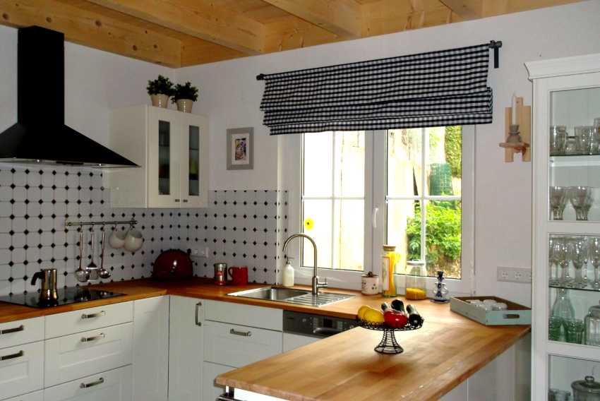 Các loại rèm Roman chính trong nội thất: ảnh nhà bếp
