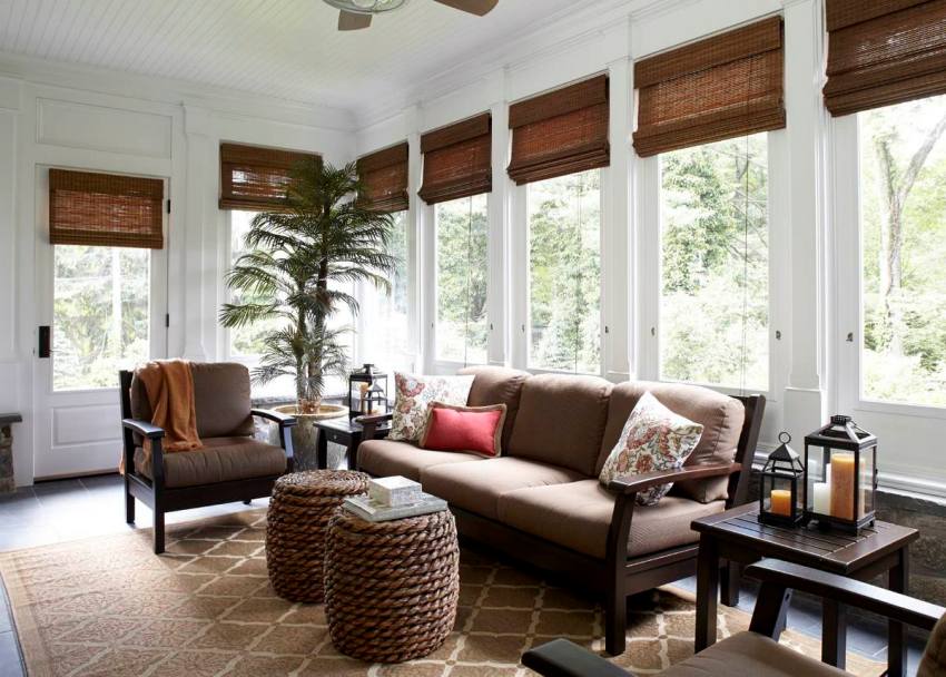 Rèm che nắng che bớt một phần ánh sáng, đồng thời giữ nhiệt. Loại này thường được dùng để che nắng cho phòng khách, phòng làm việc. Điều này rất lý tưởng cho các nhà kính mini và nhà kính, như trong ảnh. Chi phí ngang jalousie cho cửa sổ là trung bình 700 rúp. Sản phẩm được làm từ loại vải cản sáng đặc biệt, do có nhiều lớp nên bảo vệ hoàn toàn căn phòng khỏi sự xâm nhập của ánh sáng mặt trời. Những tấm rèm này lý tưởng cho vườn ươm, phòng ngủ, phòng hội nghị và rạp chiếu phim. Chi phí trung bình của rèm cuốn cho cửa sổ là 900 rúp.