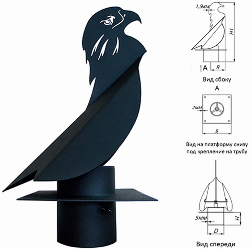 Weathervane với cánh gió thời tiết khác ở chỗ một van điều tiết đặc biệt nằm bên trong cấu trúc, cho phép các sản phẩm đốt cháy bình tĩnh thoát ra khỏi ống khói ngay cả trong thời tiết gió nhất. Và một nắp mở bổ sung giúp dễ dàng tiếp cận các ống dẫn khói để làm sạch.