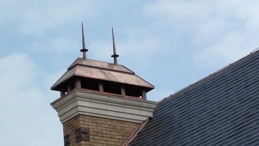 - ống khói kiểu châu Âu: có hình dáng khác thường do đỉnh hình bán nguyệt;