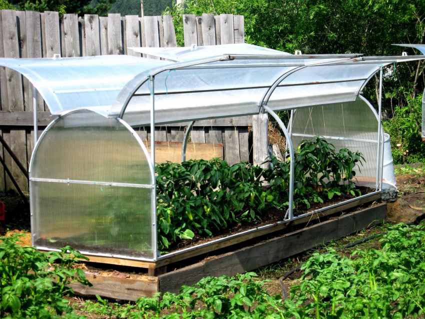 Loại giường ấm có mái che này lý tưởng cho việc trồng dâu tây, dâu tây, rau thơm và rau sớm. Để cây nhận được đủ lượng oxy, các nhà nông khuyến cáo nên trồng theo mô hình bàn cờ. Cà tím, bắp cải và các loại cây lớn khác được trồng thành hai hàng, trong khi các loại cây nhỏ hơn như hành tây hoặc củ cải được trồng thành bốn hàng.
