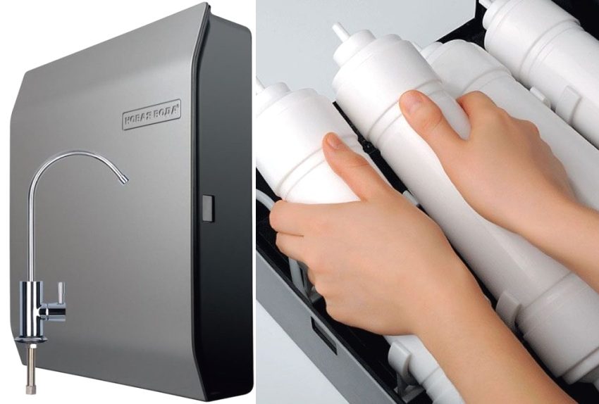 Bản thân chúng đại diện cho một hộp nhựa, bên trong chứa hộp mực, nhưng chúng cùng nhau tạo thành một hệ thống làm sạch phức tạp. Thành phần bắt buộc là một mô-đun được trang bị màng thẩm thấu ngược, giúp lọc nước siêu mịn.